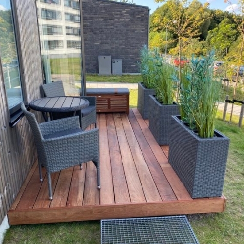 En hyggelig løsning, der giver et funktionelt uderum med plads til afslapning og samvær.